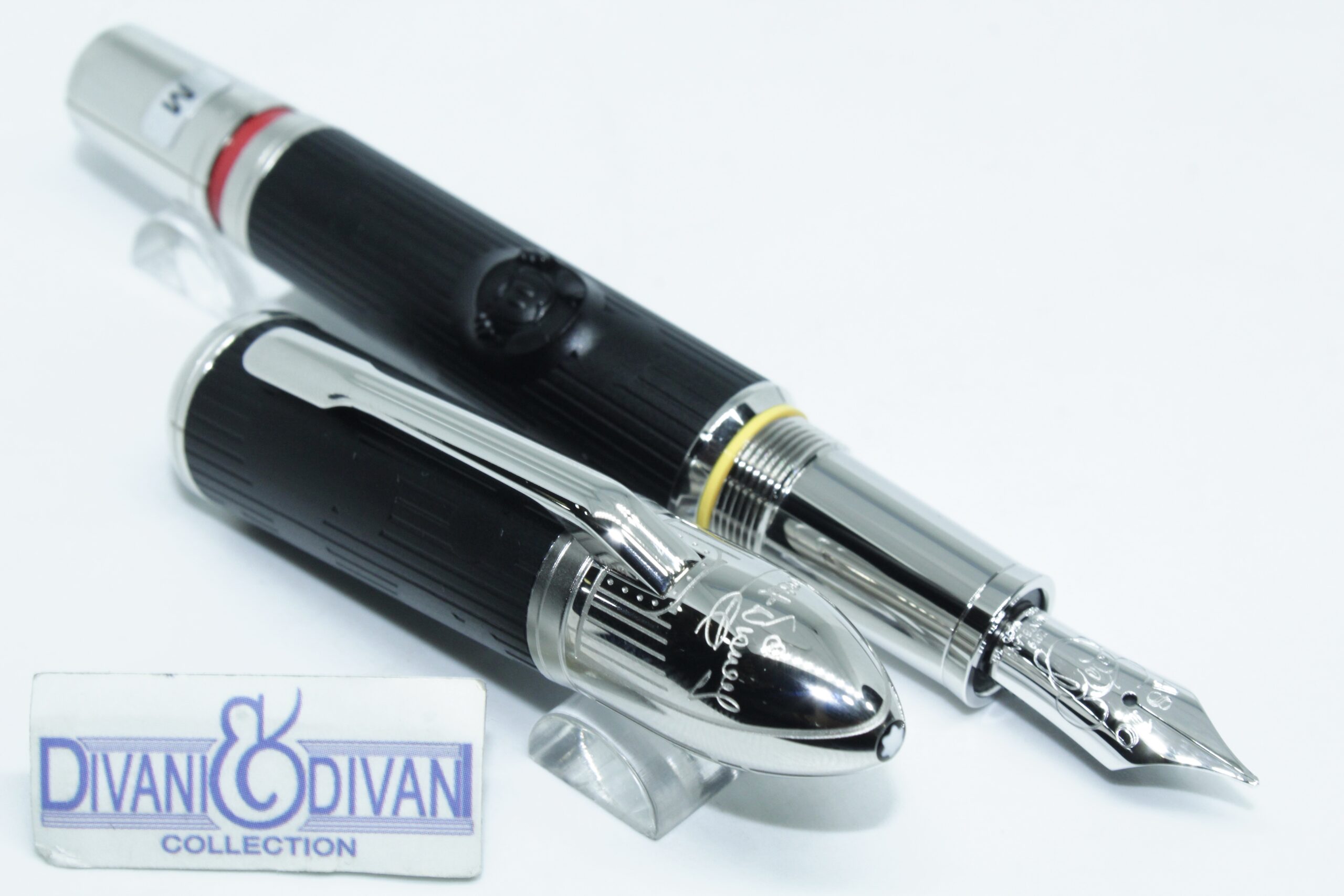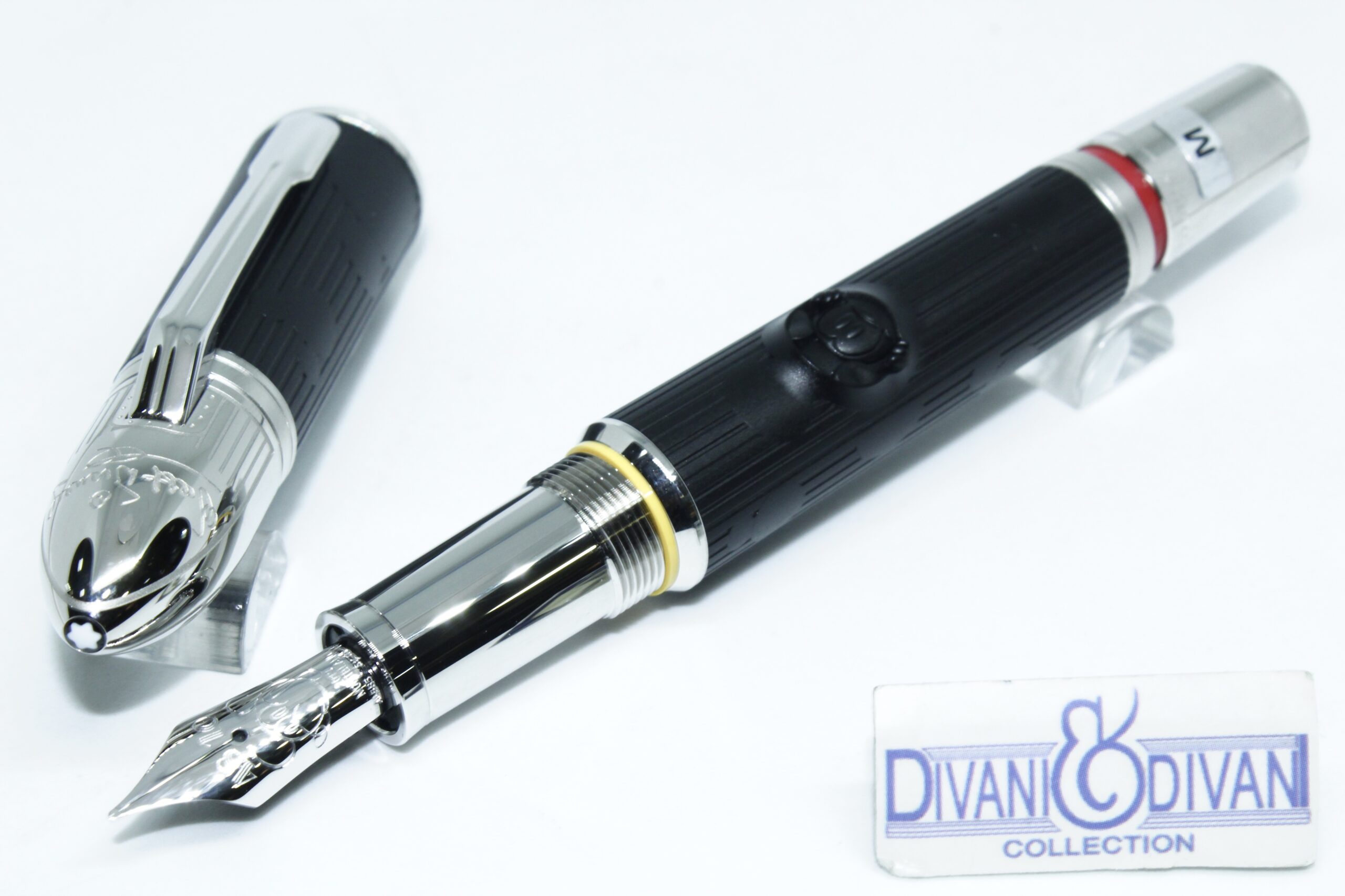 . La forma general del instrumento de escritura está inspirada en el legendario sistema Monorail, mientras que los colores son una referencia al cartel original de “Steamboat Willy” (1920) que representa a Mickey Mouse. El capuchón y el depósito de resina preciosa de color negro mate presentan varios Mickeys ocultos y la firma de Walt Disney se puede encontrar en la parte superior del capuchón. Un importante significado en los inicios de la carrera de Disney se celebra con un conjunto de coordenadas grabadas en el cono. Dan la posición del garaje del tío de Walt Disney, donde Walt Disney y su hermano construyeron un soporte para cámaras.