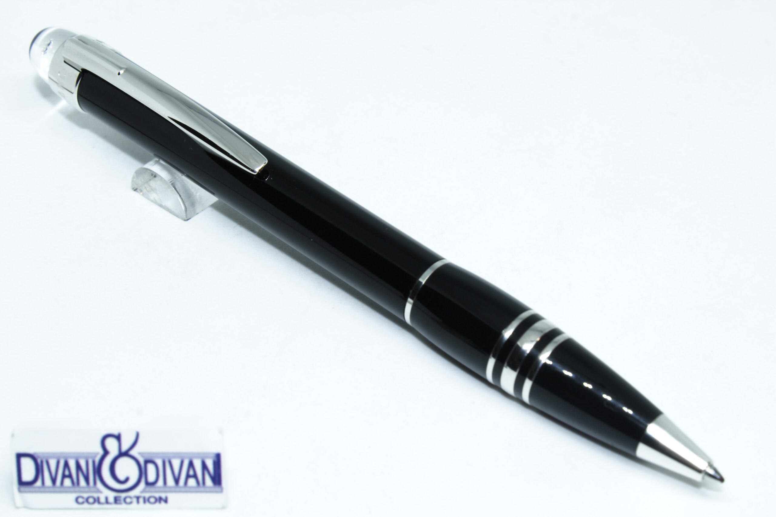 + EnvíoCuerpo elaborado en resina noble color negro, sistema giratorio, anillos y clip con acabado platinado, Diamante Montblanc coronado en el capuchón (~ 0,03 ct).